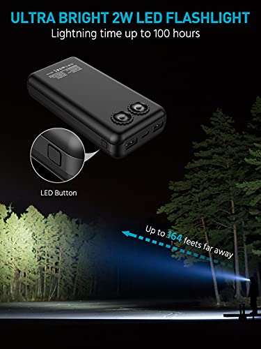 • Bardzo jasna latarka: Powerbank solarny jest wyposażony w 2 diody LED o mocy 5 W i 260 lumenów, które są wyposażone w światło ogniskowe o dużym zasięgu, które może osiągnąć zasięg do 50 metrów. Idealnie nadaje się na kemping, przygody, do konserwacji samochodu, magazynu, codziennych nagłych wypadków itd.