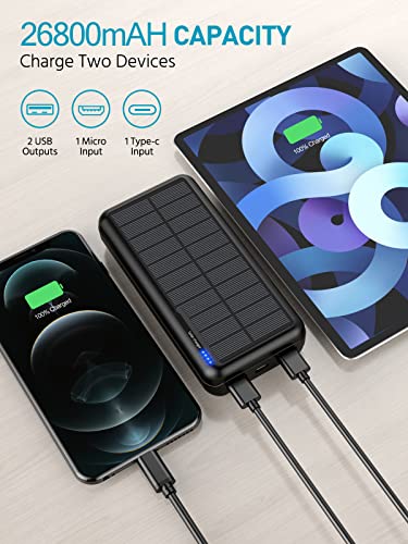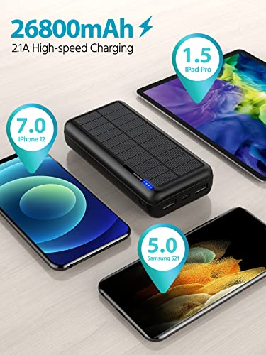 Solarny powerbank 26800 mAh, zewnętrzny akumulator: Power Bank, przenośna ładowarka, zestaw akumulatorów do telefonu komórkowego na kemping, do aktywności na świeżym powietrzu, kompatybilny z telefonem komórkowym, z systemem Android
