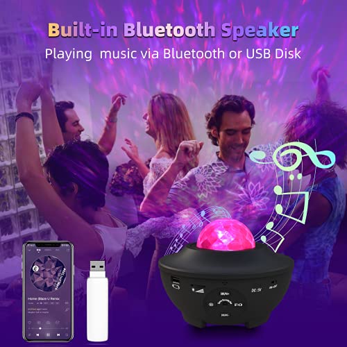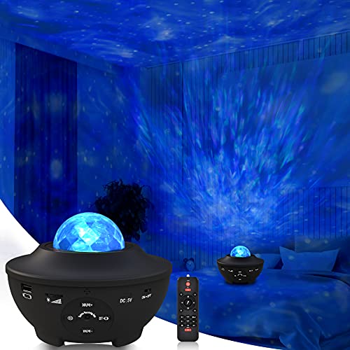 Sylvwin Star Light Projector,Ocean Wave Star Night Light with Bluetooth Music Speaker,Star Projector Lamp with Timer & Remote Control for Baby Kids Bedroom/Party/Christmas/Gift