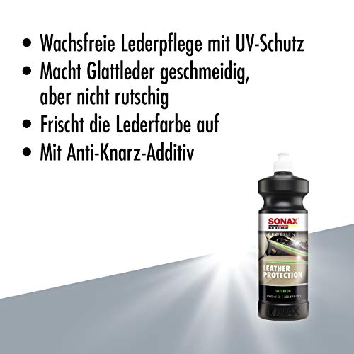 SONAX PROFILINE Ochrona skóry (1 litr) – bezwoskowy krem do pielęgnacji skóry z ochroną UV dla gładkiej skóry. Przywraca oryginalny kolor skóry, numer artykułu: 02823000