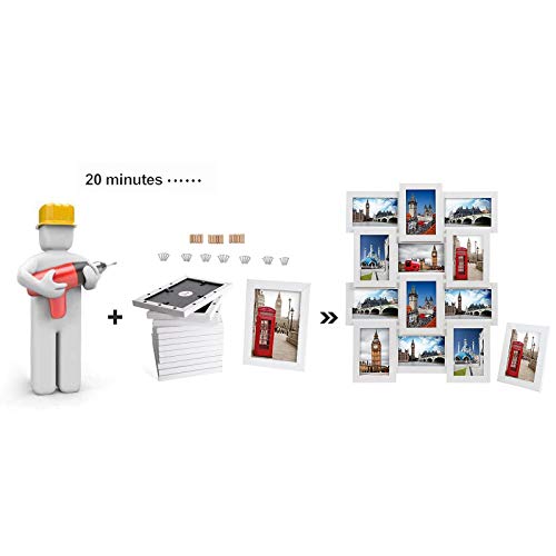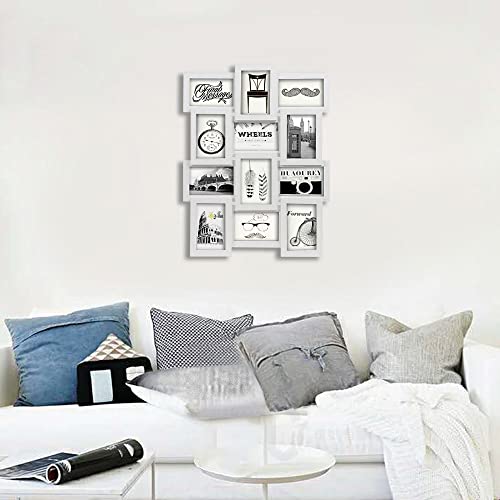 SONGMICS Ramka na zdjęcia kolaż na 12 zdjęć, każda 10 x 15 cm (4 x 6), z 1 pojedynczą ramką na zdjęcia, 13 zdjęć na kolaż, z płyty MDF, wymagany montaż, Boże Narodzenie, biała, z rysunkiem słojów drewna RPF112W