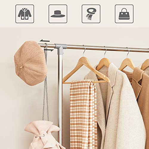 SONGMICS Kleiderständer höhenverstellbar, Garderobenständer, ausziehbare Kleiderstange, zusätzliche Stange im mittleren Bereich, (101-166) x 49 x (113-198) cm, Silber-graugrün, LLR401