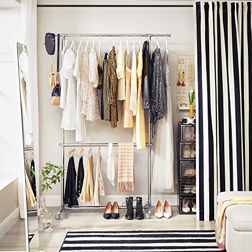 • Gute Belastbarkeit – Aus Edelstahl plattiertem Rohr, robust, haltbar und rostbeständig. Jede Kleiderstange kann mit bis zu 25 kg (20 x T-Shirt, Bluse/Hemd usw.) belastet werden. 2 Ebenen ermöglichen eine platzsparende Aufbewahrung