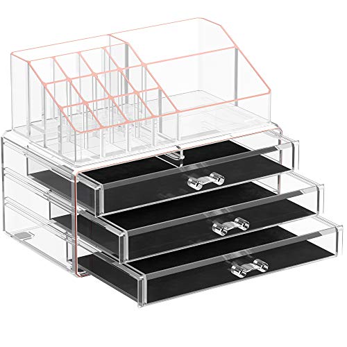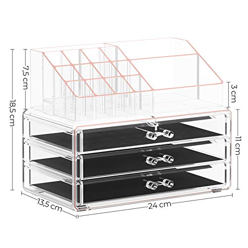 Songmics JKA002 Akrylowy Organizer do Przechowywania Kosmetyków, Tworzywo Sztuczne, Przezroczysty/Czarny, 3 Szuflady