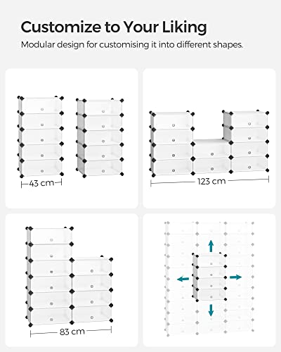 SONGMICS Schuhregal Kunststoff, rechteckiges Regalsystem mit 10 FÄchern, DIY Steckregal, Aufbewahrungsregal, Kleiderschrank, Schuh-Organizer, 40 x 30 x 17 cm pro Fach, Metalldraht, weiß LPC10W