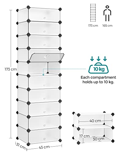 - Viel Platz für all Ihre Schuhe: Das 10-teilige Schuhregal mit einer Größe von 31 x 43 x 173 cm bietet Platz für ca. 20 Paar Schuhe; jedes Fach (40 x 30 x 17 cm) ist groß genug für Turnschuhe, flache Schuhe, Absätze und Schuhkartons