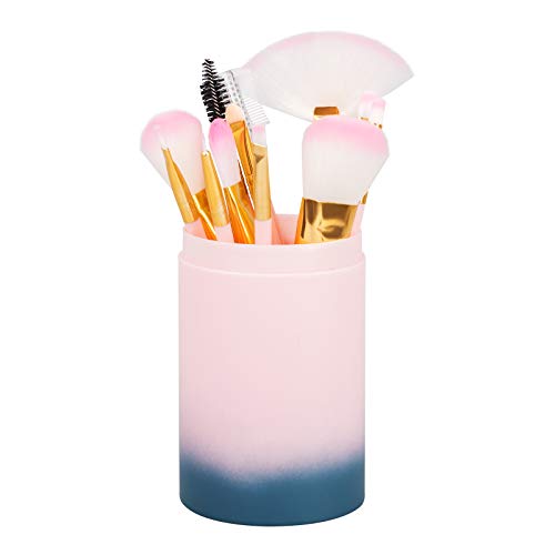 • Zestaw pędzli: 12 różnych kształtów do różnych zastosowań. Płaski ukośny pędzel, pędzel w kształcie wentylatora, zakrzywiony pędzel do cieni do powiek, owalny pędzel do cienia do powiek, kątowy pędzel, pędzel podkładowy, średni pędzel do pudru i duży pędzel do pudru.