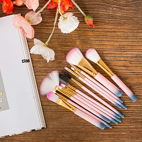 Sonku zestaw pędzli do makijażu, 12 szt. pędzli do makijażu, podkładu, różu, cieni do powiek, eyelinera z 4 gąbkami do makijażu