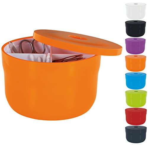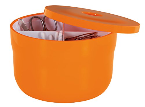 Spirella Organizer na kosmetyki „Cocco” z indywidualnie regulowanymi przegródkami, pudełko do przechowywania kosmetyków i biżuterii, 15 x 9 cm, z pokrywką pomarańczową