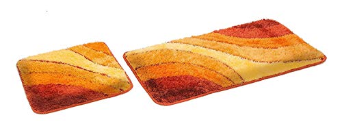 S&S-Shop Zestaw mat łazienkowych, terakota, fale, 2-częściowy, antypoślizgowy, dywanik do toalety 50 x 45 cm, 50 x 90 cm, dywanik łazienkowy