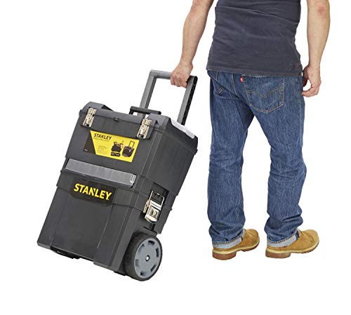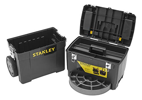 Stanley Rollende Werkstatt (47,3 x 30,2 x 62,7 cm, zwei separat verwendbare Werkzeugboxen, robuster Kunststoff, zwei Einheiten, Metallschließen, Organizer) 1-93-968