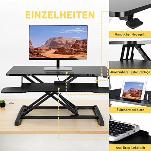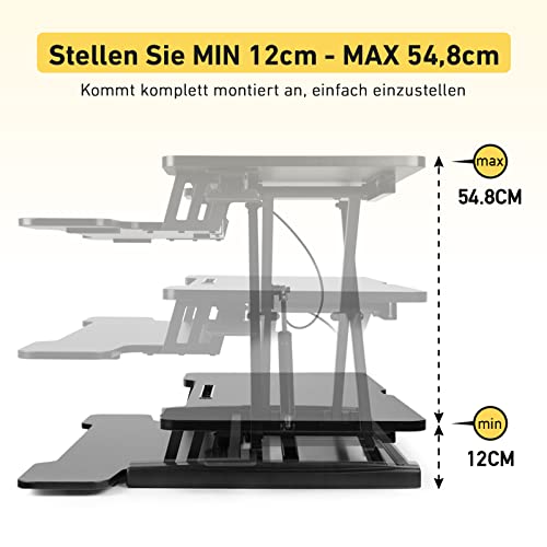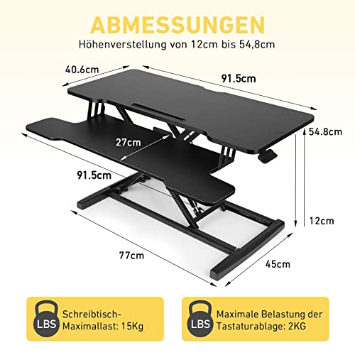 • 【Odpoczynek od siedzenia】Wysokość pulpitu można bezstopniowo regulować w zakresie od 12 cm do 55 cm, dzięki czemu można pracować na przemian w pozycji stojącej lub siedzącej. 2-stopniowa konstrukcja zapewnia więcej miejsca, stojak na biurko ma wymiary 92 cm x 41 cm, a półka na klawiaturę ma wymiary 92 cm x 27 cm.