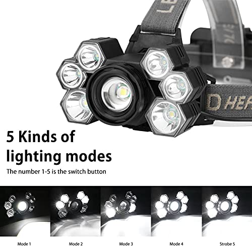 Napisz pierwszą opinię o „Lampa czołowa, ładowana przez USB, regulacja 90°, 7 diod LED, super jasna, 5 poziomów jasności, do aktywności na świeżym powietrzu, na kemping, wędrówki, wędkowanie, przygody”