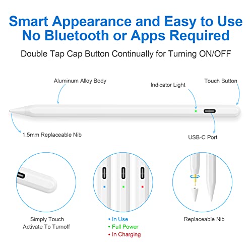 TQQ Rysik do Apple iPad (2018-2024), bardzo precyzyjny iPad Pencil z czułością nachylenia i odrzuceniem dłoni, kompatybilny z iPad 10/9/8/7/6 generacji, iPad Pro 11″/12,9″, iPad Mini 6/5 generacji,