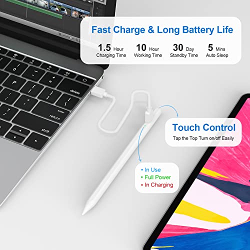 TQQ Rysik do Apple iPad (2018-2024), bardzo precyzyjny iPad Pencil z czułością nachylenia i odrzuceniem dłoni, kompatybilny z iPad 10/9/8/7/6 generacj