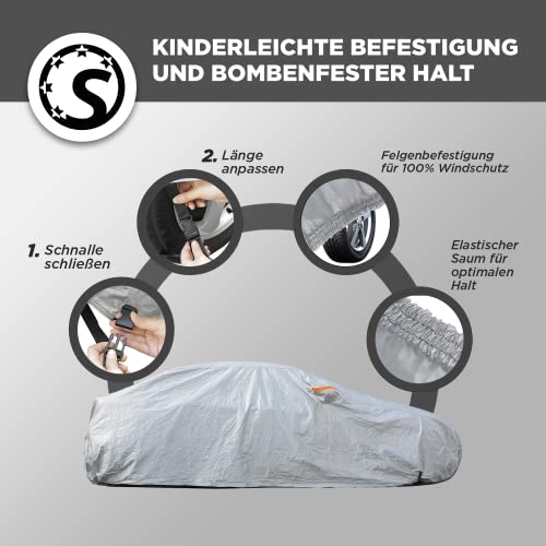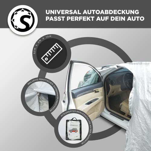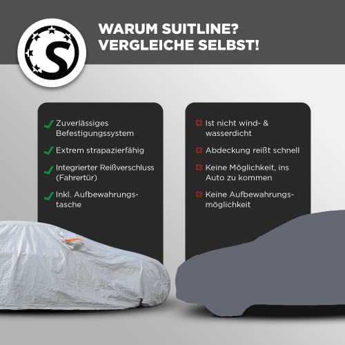 Suitline Uniwersalna plandeka samochodowa (530 x 200 x 150 cm) – wiatroszczelna, wodoszczelna i pyłoszczelna – zimowa plandeka na samochód