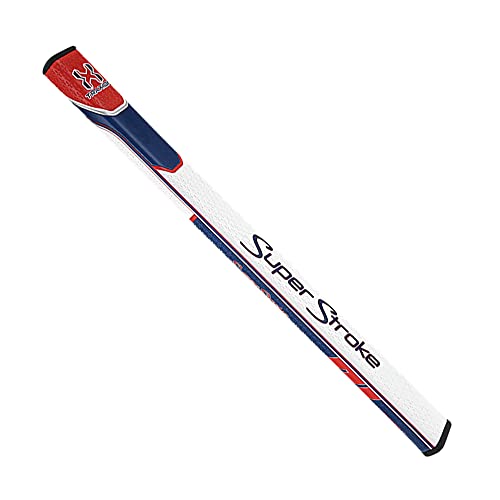SuperStroke Unisex’s Traxion Flatso Golf Club uchwyt, biały/czerwony/niebieski, 100 g, 43 cm, rdzeń 0,58 cala