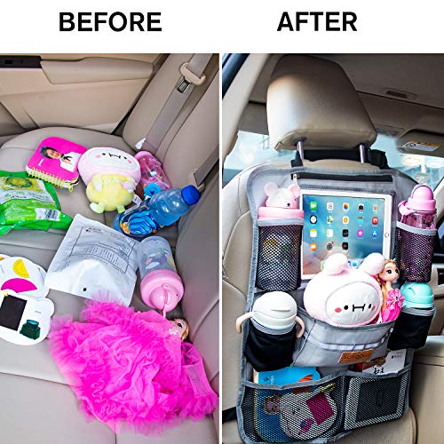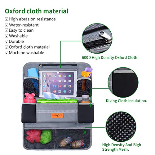 SURDOCA Organizer na fotel samochodowy – 4. generacji ulepszony organizer samochodowy na tylne siedzenie do 10,5 tablet i 9 kieszeni, przechowywanie zabawek dla dzieci, wodoszczelny (1 PC, Grey)