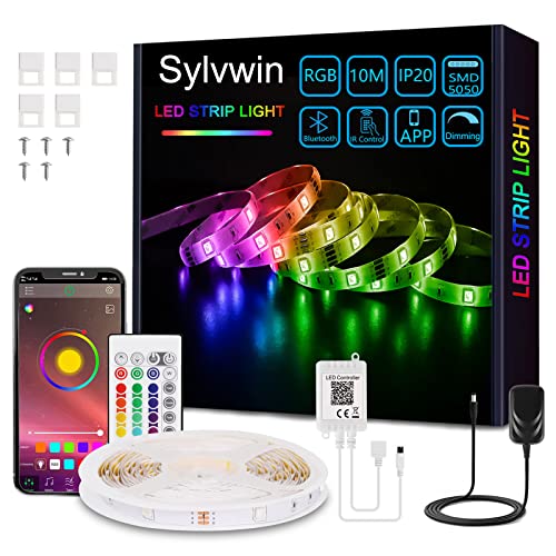 Sylvwin Taśma LED 10m, Taśma LED RGB 5050 z funkcją muzyczną, aplikacją Bluetooth i pilotem do salonu/kuchni, dekoracji sypialni, imprezy, podświetlenia telewizora