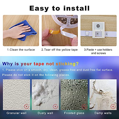 • 【Silna konstrukcja klejenia i cięcia 】 Pakiet All-in-One, nie wymaga dodatkowych narzędzi. Paski świetlne LED o długości 10 m z tyłu są dostarczane z mocnym dwustronnym klejem i klamrami, które są łatwe w użyciu. (Przed instalacją należy oczyścić powierzchnię). Paski świetlne można samodzielnie wykonać w zależności od wielkości pomieszczenia, dzięki czemu pasują do pomieszczenia, meble, które musisz udekorować. Proszę przyciąć zgodnie z marką.