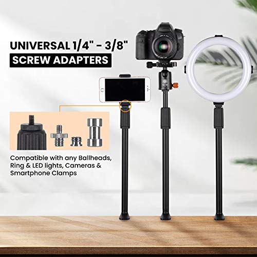 TARION Stół statyw świetlny statyw zaciskowy 35 – 62 cm regulowany statyw jednonożny ze śrubą 1/4 i adapterem gwintowanym 1/4 na 3/8 do fotografii, streaming i nagrywanie wideo (S)