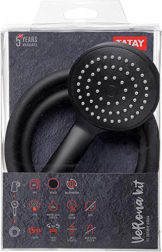 Głowica prysznicowa Tatay, czarno-biała, 9,7 x 4,3 x 24 cm