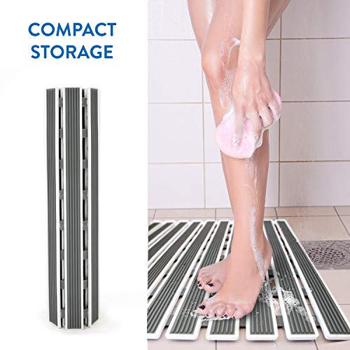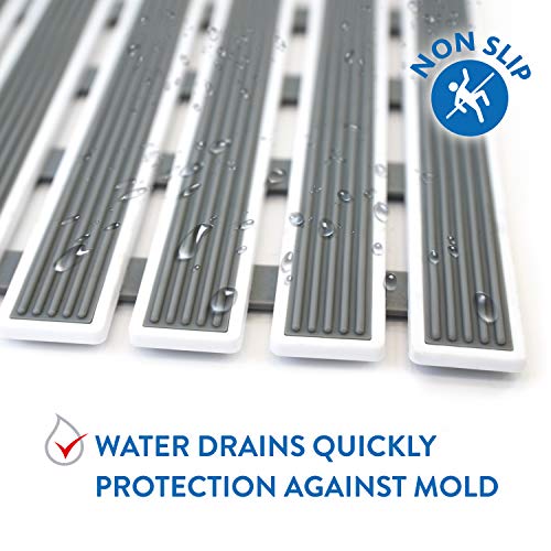 Tatkraft Bond rutschfest Badewannenmatte, Duschmatte, Badematte mit Saugnäpfen – 40x62cm – Hygienisch Sicher, Schnelltrocknend, Weiß-Grau