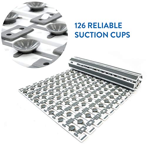 BEZPIECZNE: Na spodzie: BEZPIECZNE: Na spodzie produktu znajdują się gęste przyssawki z PCW, które zapewniają mocne i bezpieczne mocowanie, 126 przyssawek mocno przylega po naciśnięciu i nie przesuwa się, gdy nadepniesz na matę