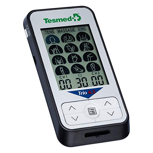 TESMED Trio 6.5 TENS Massage und EMS Trio Elektrostimulationsgerät mit 2 Kanälen, für den Muskelaufbau inkl. 4 Elektroden – Lithium Batterien, welche über USB-Kabel wiederaufladbar