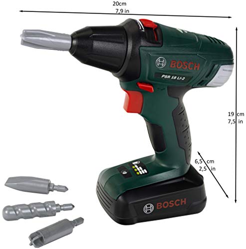 Theo Klein 8567 Zasilana na baterie wkrętarka Bosch | Z obracającymi się i wymiennymi nasadkami | Z efektami świetlnymi i dźwiękowymi | Zabawki dla dzieci od 3 lat