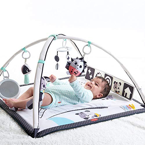 Tiny Love Czarno-Biała Mata Gymini, Muzyczna Mata Edukacyjna 2 w 1, Od 1 Dnia, Siłownia dla Niemowląt, 18 Aktywności, Zabawka Muzyczna, Książeczka Kon