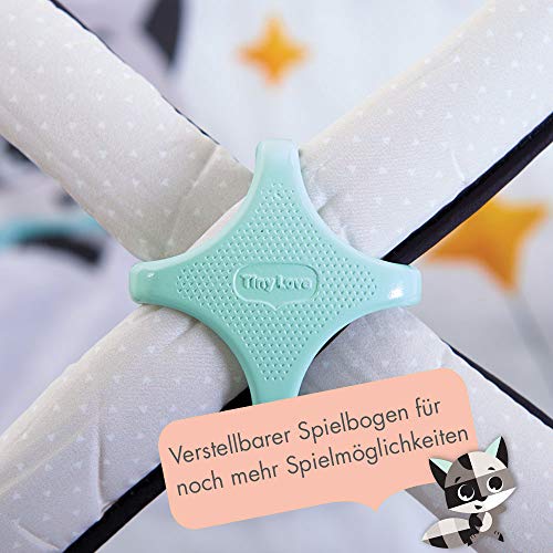 ✅ REGULOWANE PAŁĄKI I: REGULOWANE PAŁĄKI I WYBÓR TRYBU ZABAWY: dzięki innowacyjnemu łącznikowi pałąków matę można dostosować do wieku dziecka i rodzaju aktywności. Zdjęcie pałąków umożliwia z kolei wspólną zabawę na leżąco