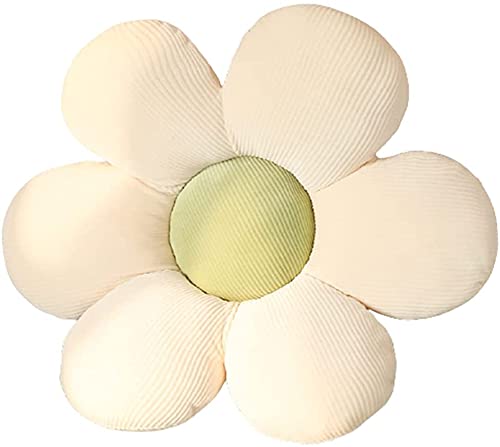 Tiowo Uroczy kwiat poduszka podłogowa, dekoracja pokoju, bawełniana poduszka ozdobna, płatek, poduszka na sofę, krzesło samochodowe, przytulanka kwiat, pluszowe zabawki, wypchana poduszka (40 cm, beżowa + zielony rdzeń)