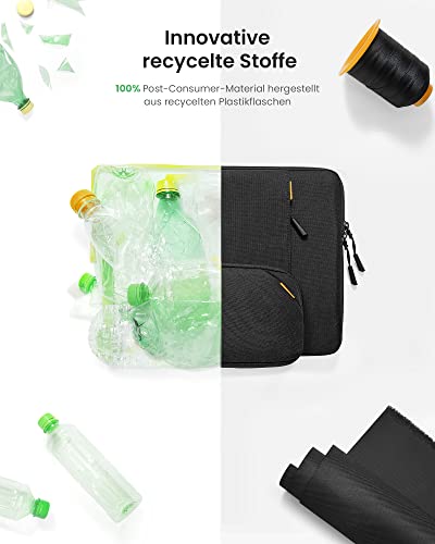 Jakość idzie w: Jakość idzie w parze z wydajnością: Wysokiej jakości, odporna na zalanie tkanina z recyklingu, zamki YKK, przemyślana, miękka podszewka i kunszt wykonania spełniają najwyższe standardy dla etui na MacBooka. Używamy tkanin pochodzących z recyklingu i wykorzystaliśmy setki tysięcy wyrzuconych plastiko