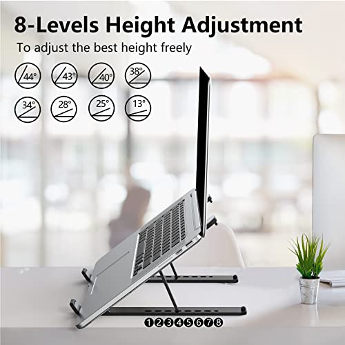 ✅ 【Regulowany i: ✅ 【Regulowany i ergonomiczny】: Uchwyt na laptopa podnosi notebooka z wysokości 2,78″ do 6,5″ (7 poziomów), zapewniając idealny poziom oczu, pozwalając skorygować postawę i zmniejszyć zmęczenie szyi, ból pleców i zmęczenie oczu. Bardzo wygodny do pracy w domu, biurze i na świeżym powietrzu.