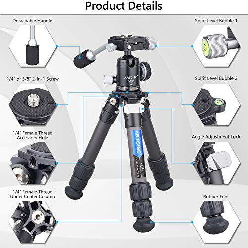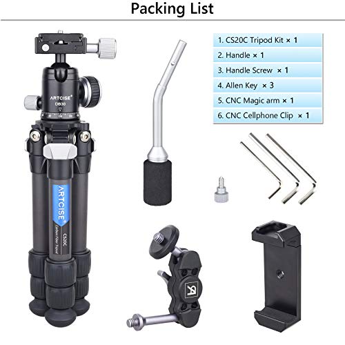 Statyw mini aparatu 17,3 cala, ARTCISE kompaktowy statyw biurkowy z włókna węglowego ARTCISE, przenośny statyw na biurko z uchwytem CNC, głowica kulowa i uchwyt na telefon z magicznym ramieniem do kamery DSLR, maksymalne obciążenie 10 kg