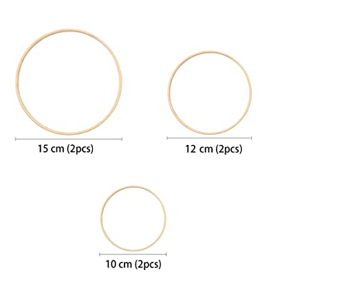 6 sztuk kwiatowych bambusowych pierścionków do korony z makramą bambusa, Dream Catcher okrągły drewniany pierścionek, bambusowa obręcz, rękodzieło, 3 rozmiary (10/12/15 cm)