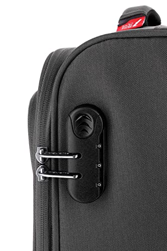 • Kabin: Walizka na kółkach wykonana z wytrzymałego poliestru została zaprojektowana jako bagaż pokładowy i spełnia wymogi IATA, a także surowe wytyczne większości linii lotniczych dotyczące bagażu podręcznego na kółkach 55 x 40 x 20 cm