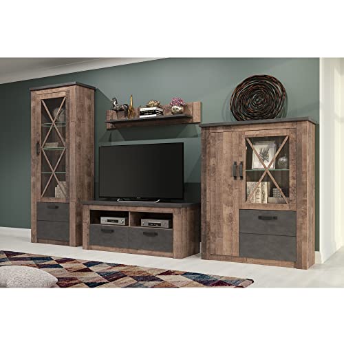 trendteam smart living Półka ścienna do salonu półka ścienna półka na książki regał na książki Ge, 135 x 24 x 20 cm dąb tytoniowy + Matera wygląd dębu