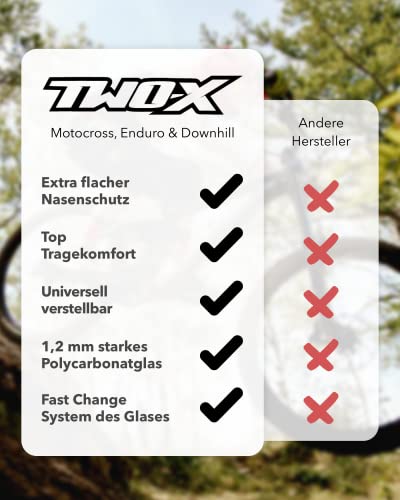 TWO-X Rocket gogle crossowe, neonowe, żółte, przezroczyste okulary MX do motocrossu, enduro, przezroczyste szkło, okulary motocyklowe, okulary ochronne z ochroną nosa, ochrona przed zarysowaniami, szybkie zmiany