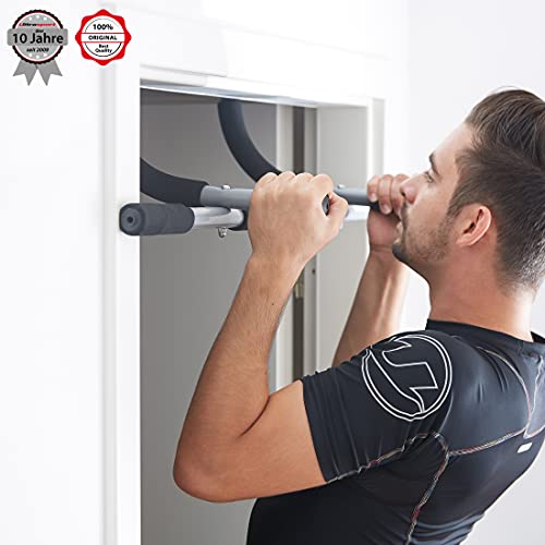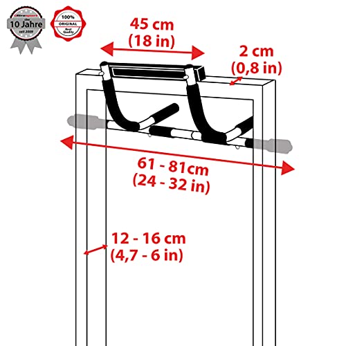 - Die ideale Klimmzugstange für Türrahmen mit einer Breite von ca. 61 bis max. 81 cm und einer Tiefe von 12 bis 16 cm – einfach am oberen Türrahmen einhaken und das Oberkörpertraining kann beginnen