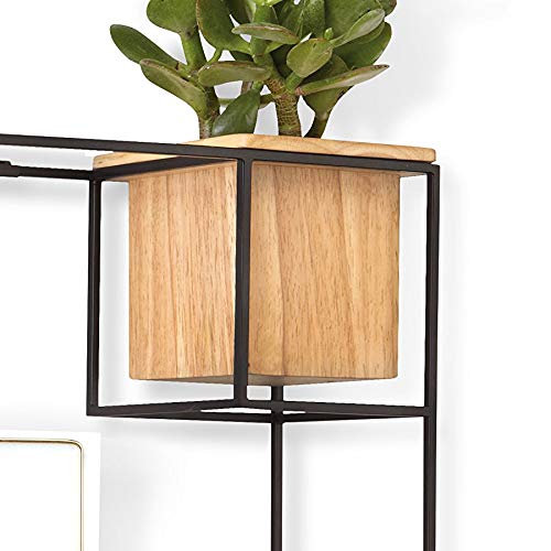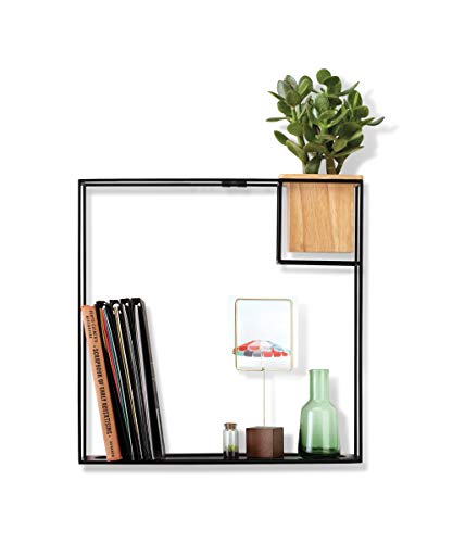Umbra Cubist schwebendes Regal mit integriertem Pflanzentopf – Moderne Wand Dekoration und geometrisches Wandregal für Bücher, Kerzen, Bilderrahmen, Zimmerpflanzen und vieles mehr! Groβ, Metall/Holz, Schwarz