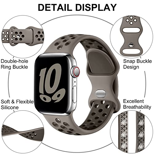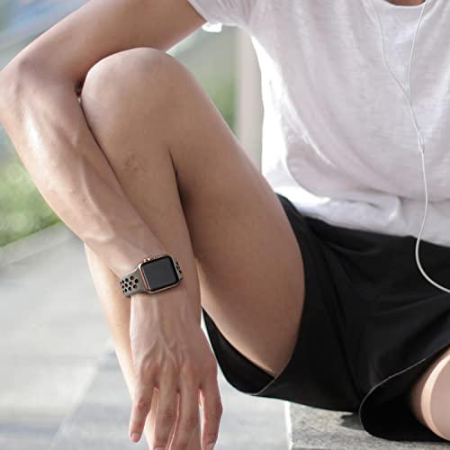 Upeak Pasek Sportowy Kompatybilny z Apple Watch Pasek 38mm 40mm 41mm 42mm 44mm 45mm, Oddychająca Silikon Opaska Zatrzaskowa z Podwójnym Otworem, do Pa