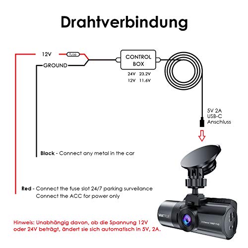 ✅ 【Dokładna ochrona przed: 【Dokładna ochrona przed niskim napięciem】 Zgodnie z instrukcją należy zainstalować kabel. Ten przewodowy zestaw ma 2 stopnie, 12 V/11,6 V do pojazdów 12 V, 24 V / 23,2 V do pojazdów 24 V, podłącz kamerę bezpośrednio do samochodów w celu ciągłego zasilania, prąd kamery samochodowej wyłącza się automa