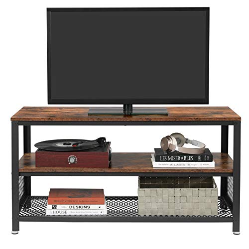 VASAGLE Fernsehtisch für Fernseher bis zu 43 Zoll, TV-Schrank im Industrie-Design, Konsole, Lowboard, Wohnzimmertisch mit Metallrahmen, Holzmaserung, Wohnzimmer, Vintage, dunkelbraun, LTV40BX
