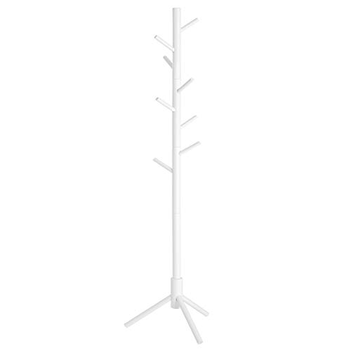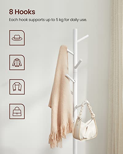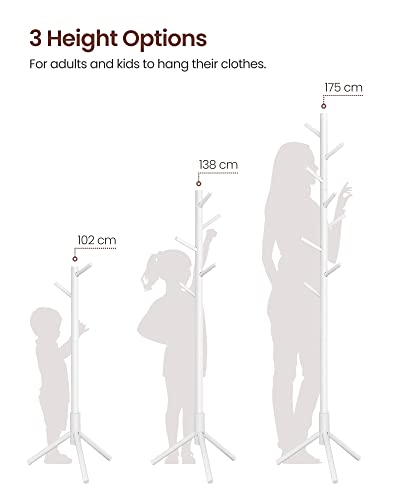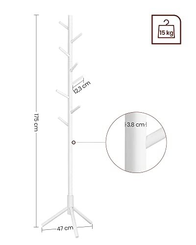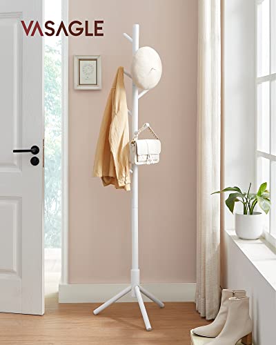 VASAGLE wolnostojący wieszak na płaszcze z litego drewna, w kształcie drzewa, z 8 haczykami, na odzież, czapki, torby, do przedpokoju, przy wejściu, biały RCR04WT