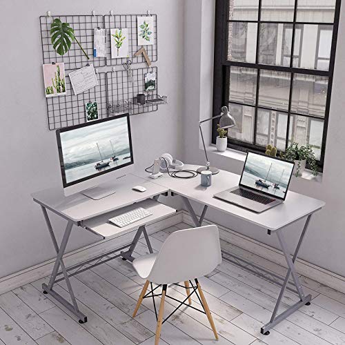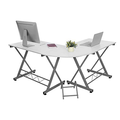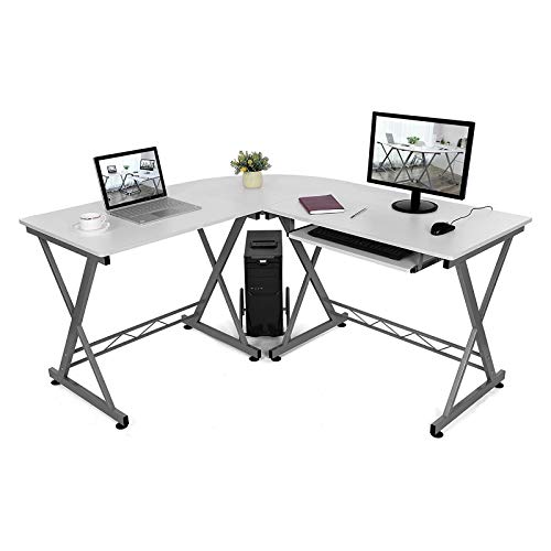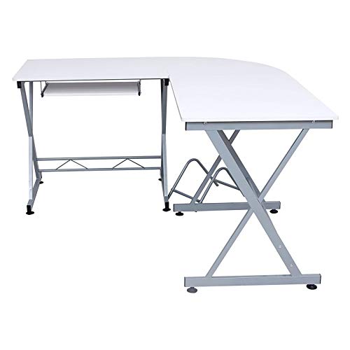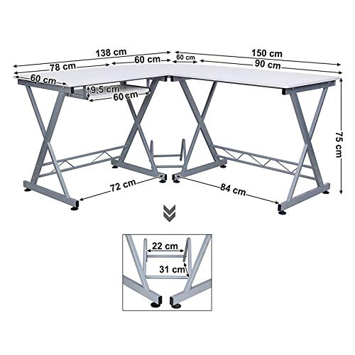 SONGMICS Stolik pod komputer, biurko, do domowego biura, 150 x 138 x 75 cm, biały LCD402W