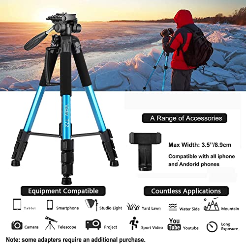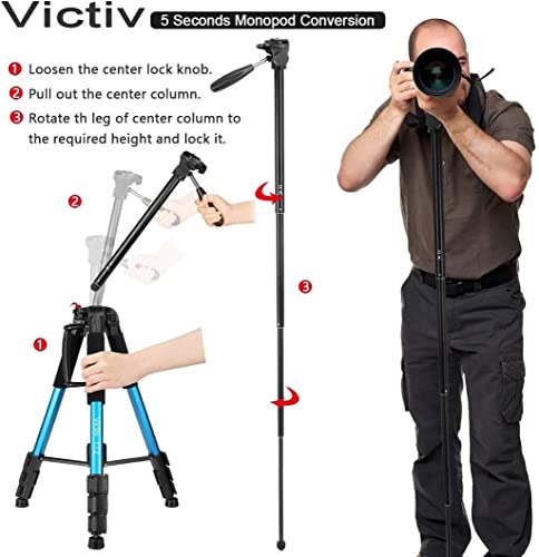 Victiv 182.9 cm statyw do aparatu, aluminiowy monopod T72, maks. wysokość 182 cm, lekki i kompaktowy, do podróży, z 3-kierunkową głowicą obrotową i 2