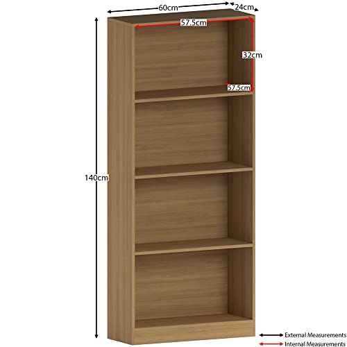 Stylowy i nowoczesny: Stylowy i nowoczesny wygląd: 4-poziomowy duży regał na książki Cambridge ma elegancki i nowoczesny design, który uzupełni każde pomieszczenie w Twoim domu. Wykończenie z okleiny papierowej nadaje mu dopracowany i wyrafinowany wygląd, dzięki czemu jest doskonałym dodatkiem do salonu, sypialni lub dom