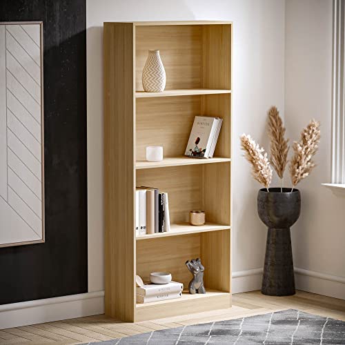 Vida Designs Cambridge 4-poziomowy duży regał na książki, dębowe drewniane regały, ekspozycyjne, do biura, mebli do salonu